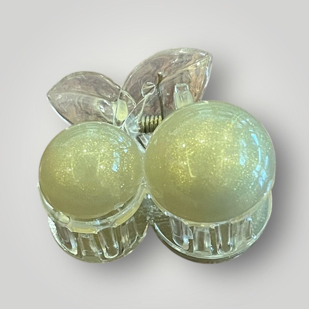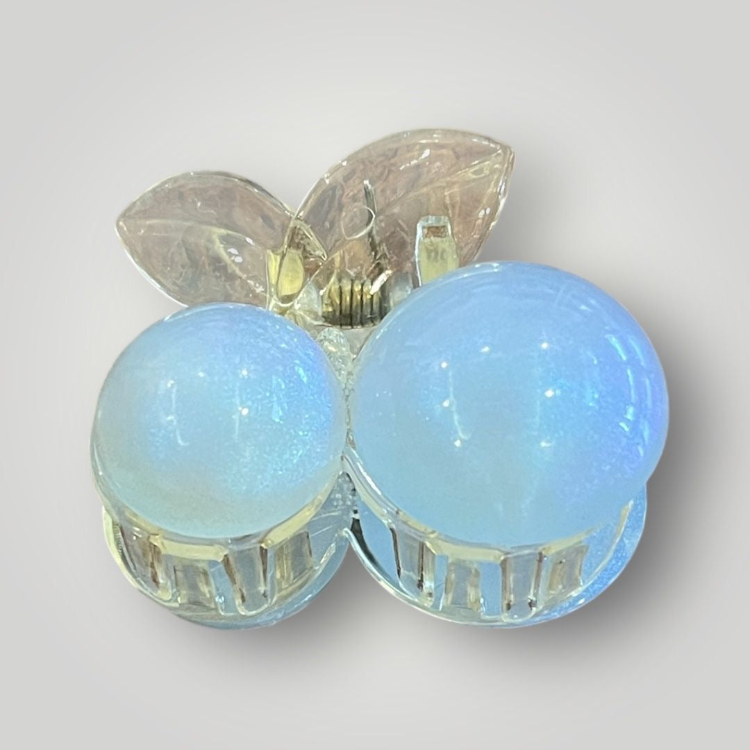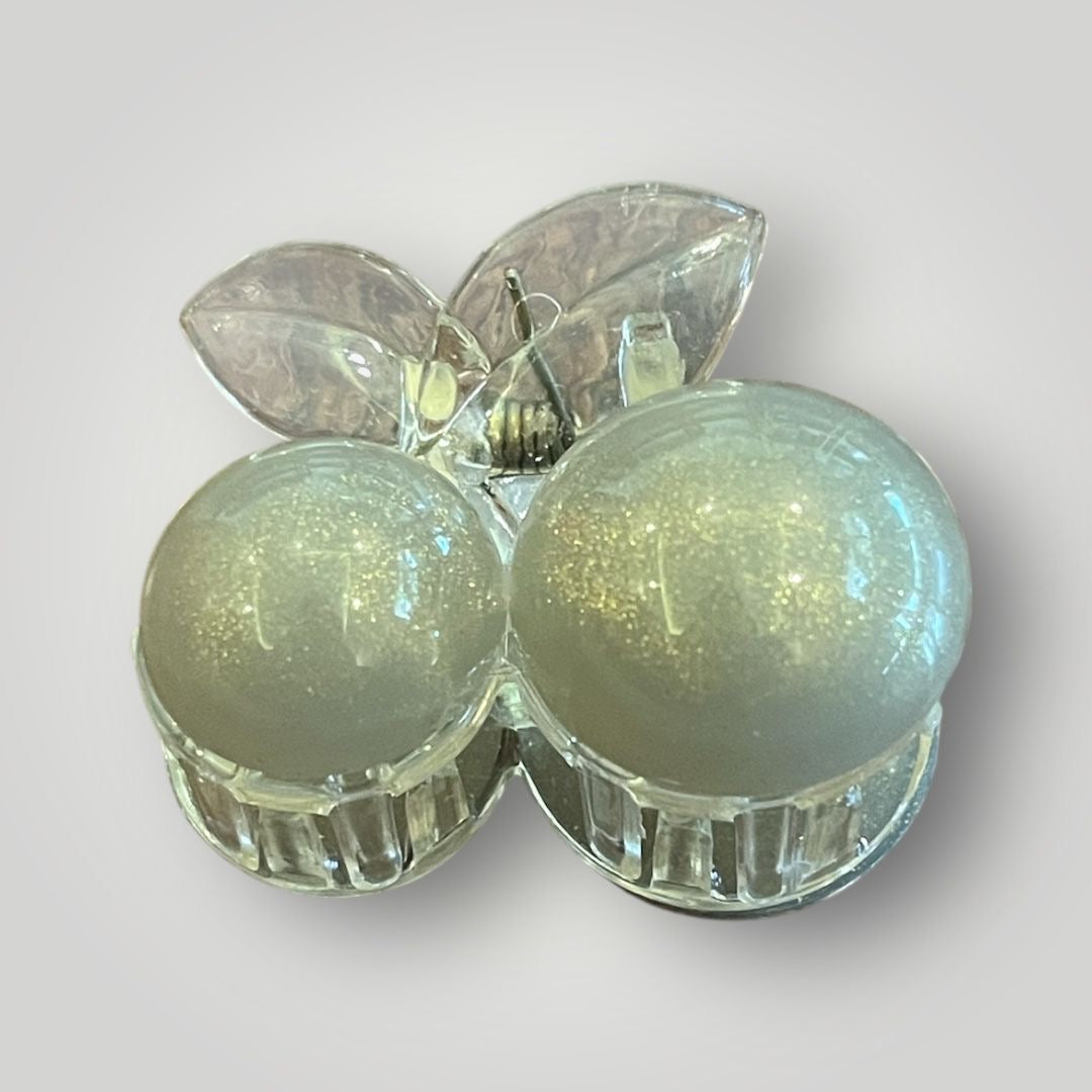 Inspired by the soft, ethereal glow of cherry blossoms, each Cherry Blossom Mini Hair Claw features two luminous, sphere-shaped 'petals' that boast a beautiful iridescent or shimmering pearl-like finish. These are elegantly nestled against clear, subtly winged accents that evoke the delicate leaves or branches of a blooming tree. The serene, pastel hues and captivating shimmer catch the light beautifully, bringing a whisper of springtime charm to your look. Crafted with a durable yet gentle claw mechanism, it provides a secure and comfortable hold without pulling. Lightweight and versatile, this mini hair claw is an ideal accessory for adding a hint of fresh, sophisticated beauty to both everyday wear and special occasions.