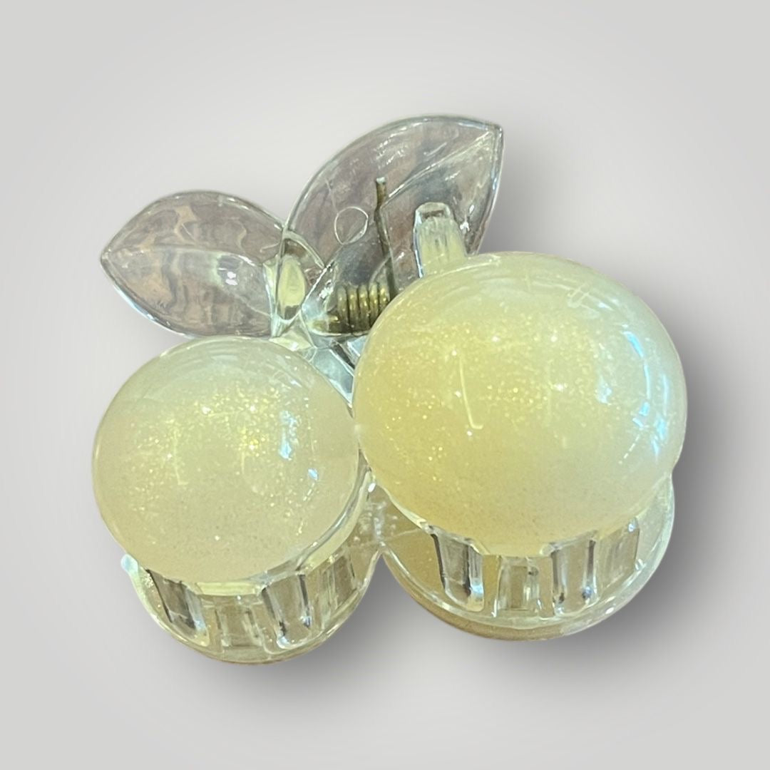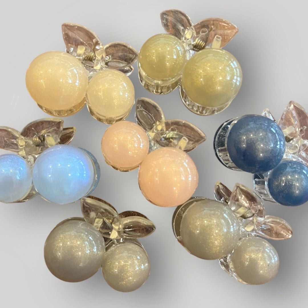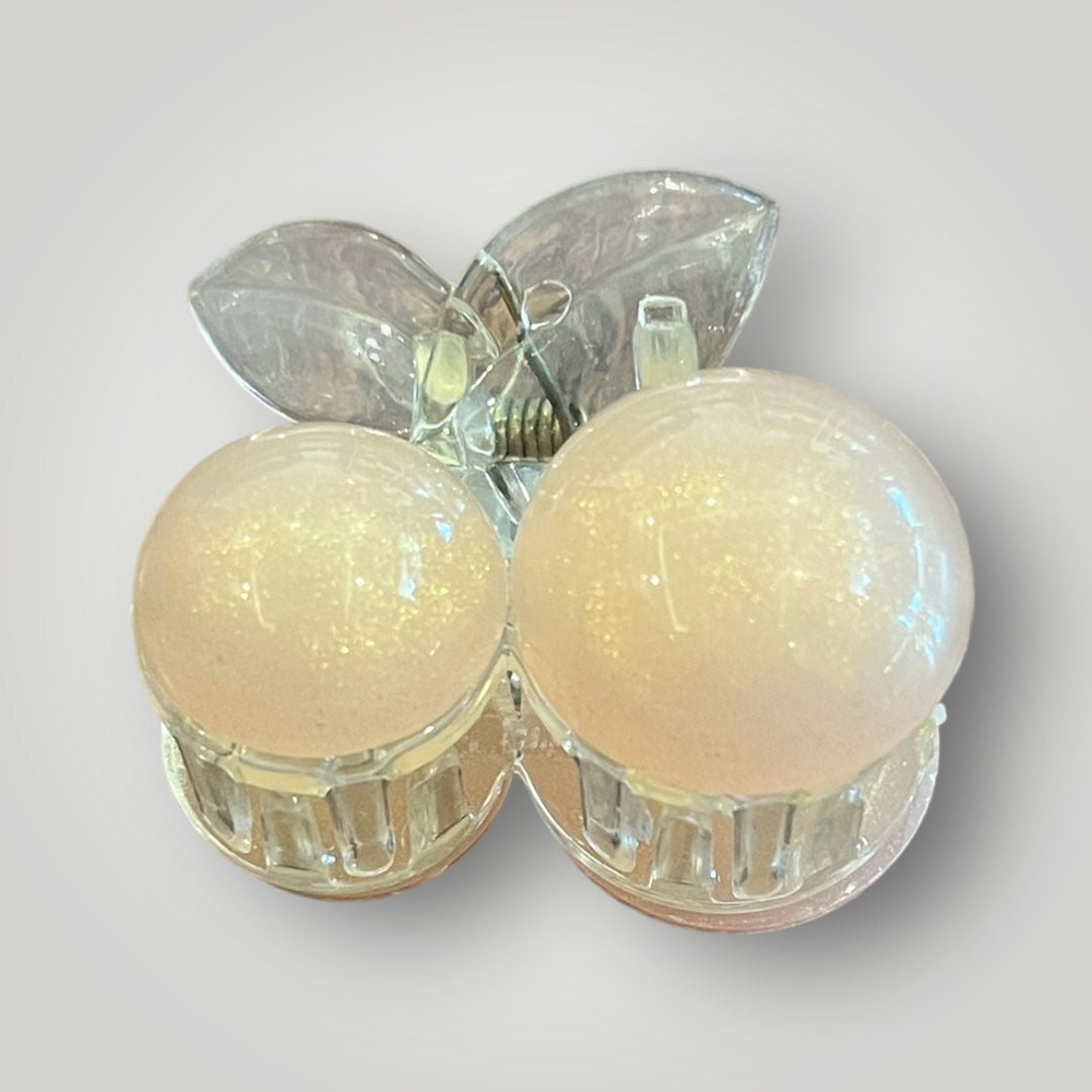Inspired by the soft, ethereal glow of cherry blossoms, each Cherry Blossom Mini Hair Claw features two luminous, sphere-shaped 'petals' that boast a beautiful iridescent or shimmering pearl-like finish. These are elegantly nestled against clear, subtly winged accents that evoke the delicate leaves or branches of a blooming tree. The serene, pastel hues and captivating shimmer catch the light beautifully, bringing a whisper of springtime charm to your look. Crafted with a durable yet gentle claw mechanism, it provides a secure and comfortable hold without pulling. Lightweight and versatile, this mini hair claw is an ideal accessory for adding a hint of fresh, sophisticated beauty to both everyday wear and special occasions.
