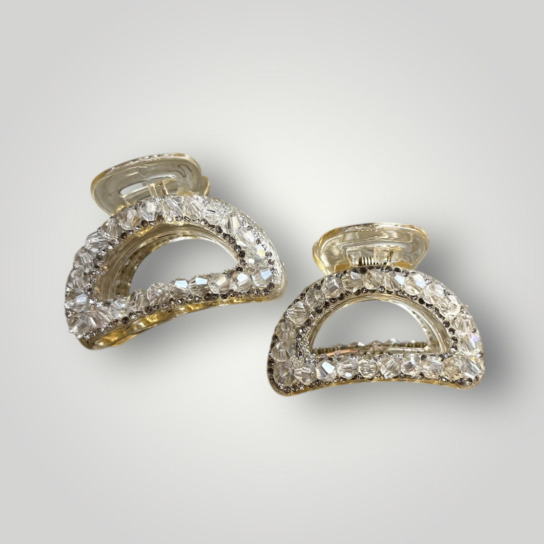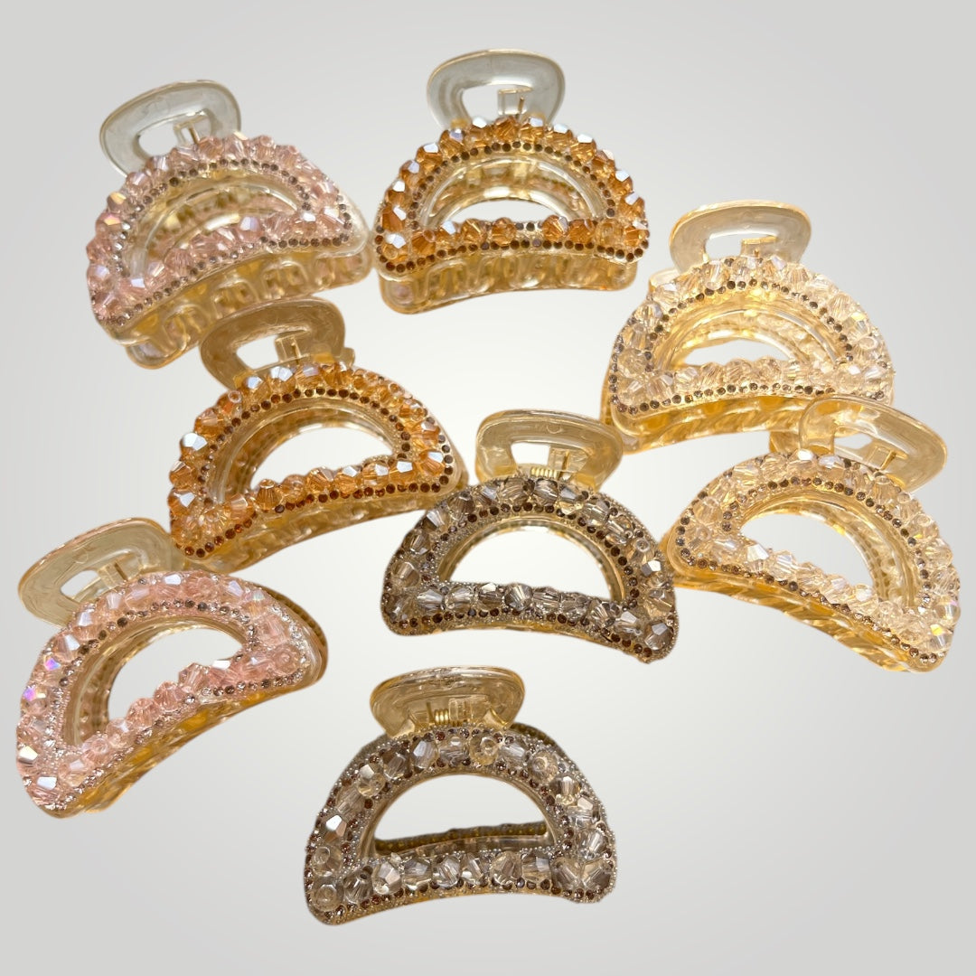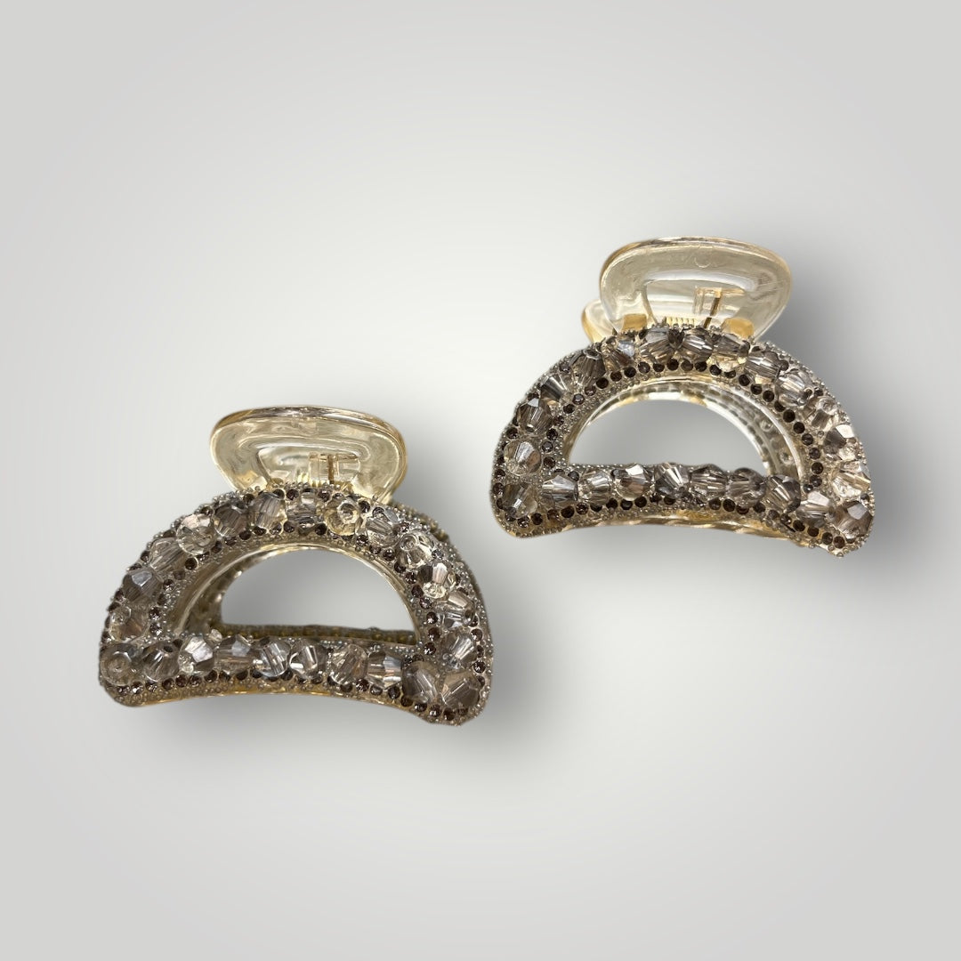 Add a touch of sparkle to your everyday look with our Crystal Mini Aura Claw. Designed in a compact 4cm size, these elegant claws are adorned with high-shine crystals that catch the light beautifully. Perfect for half-up hairstyles, pinning small sections, or adding a polished accent to any outfit. Lightweight, strong grip, and available in soft gold, champagne, rose, and smoke tones—your new go-to mini glam clip for effortless styling.Â
