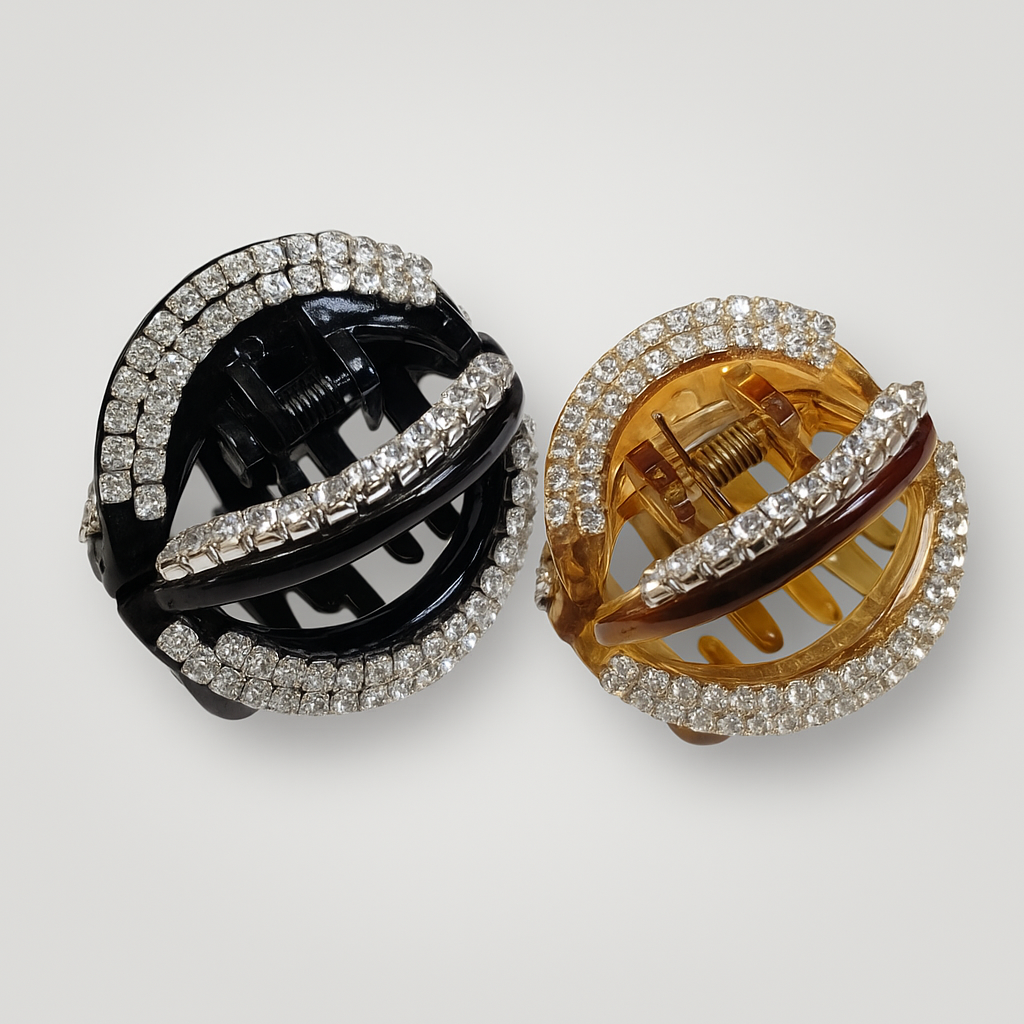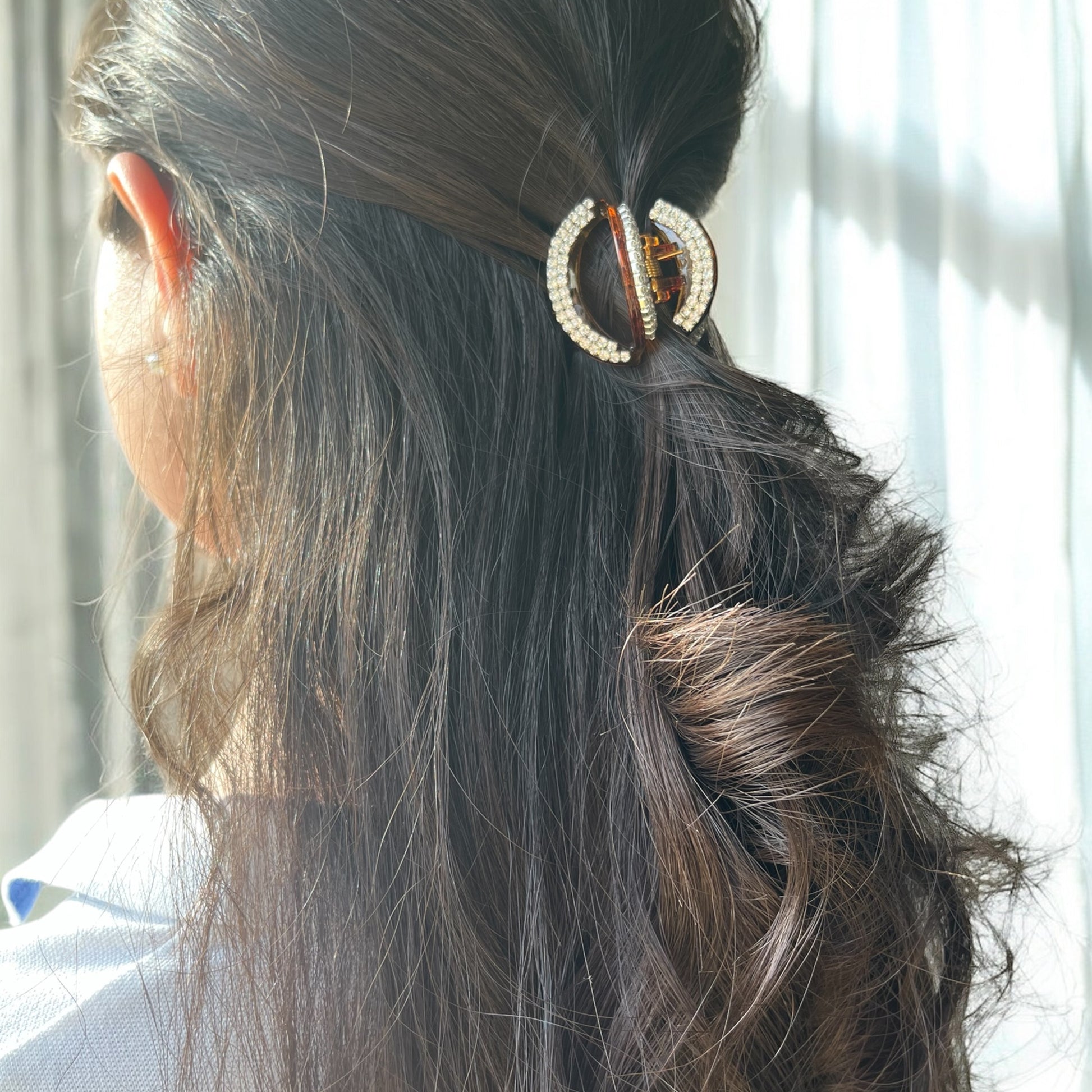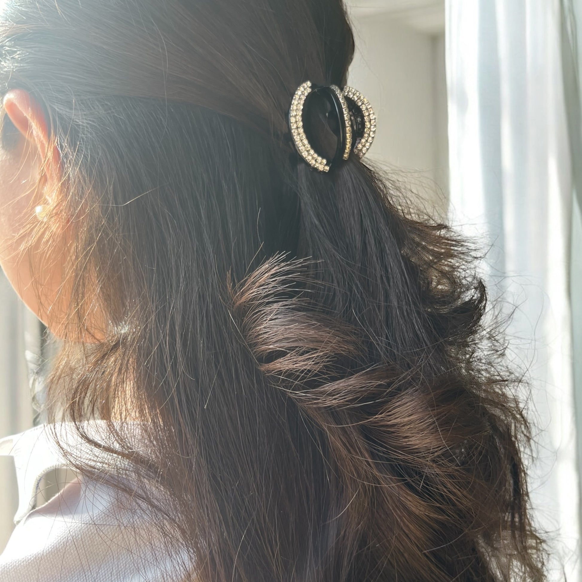 The Crystal Orbit Clip brings major shine with crystal-lined curves and a bold finish. Twist, clip, slay.