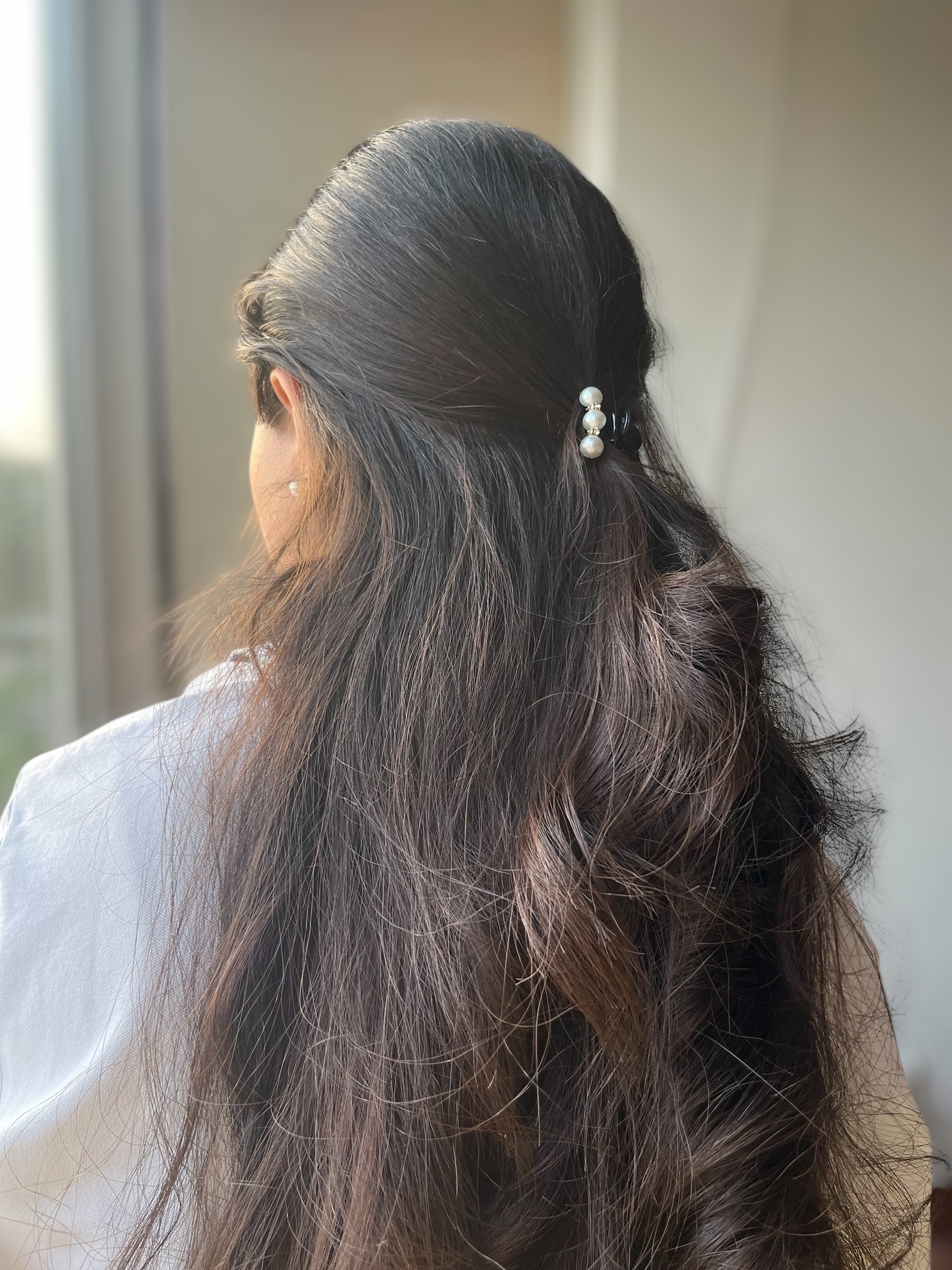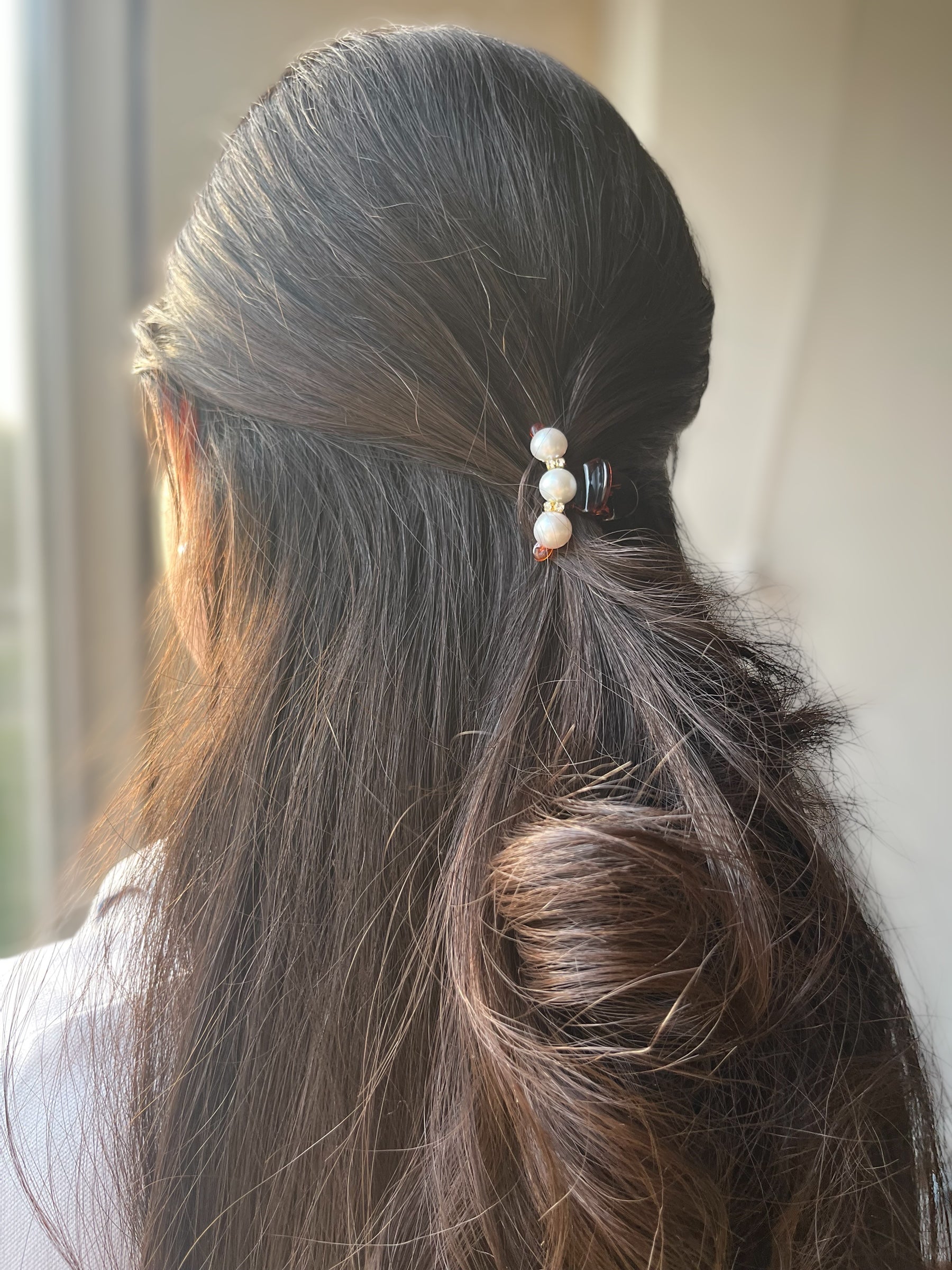 Chic and compact, the Pearl Luster Mini Claw features glossy pearls and subtle rhinestones for a touch of glam.